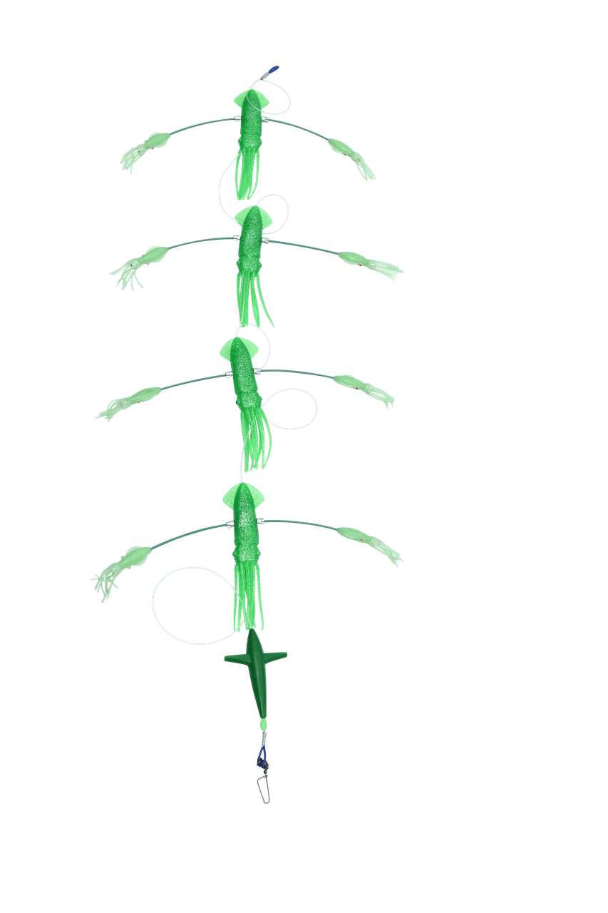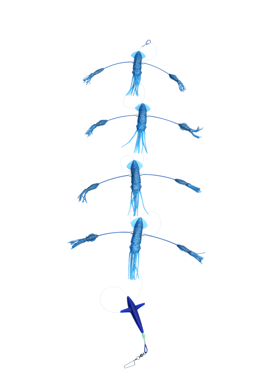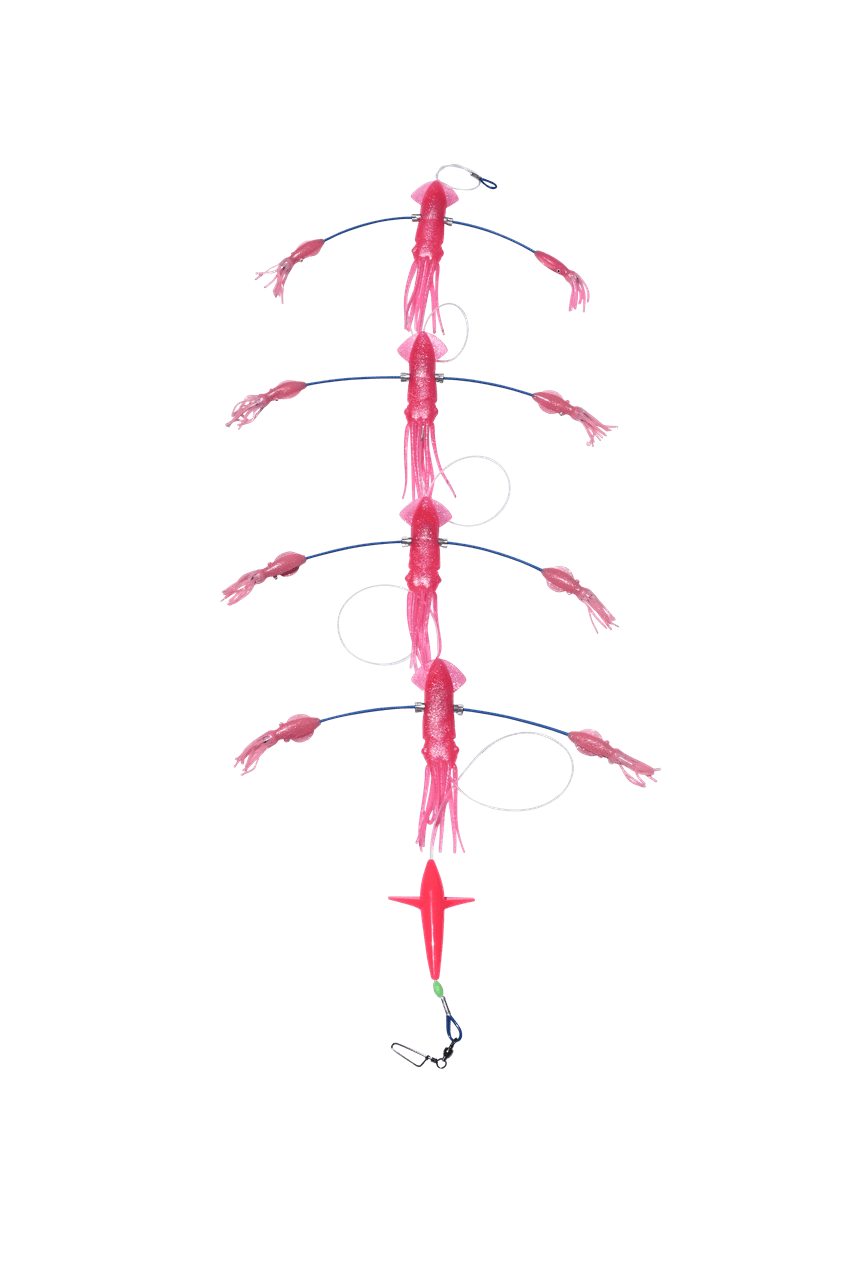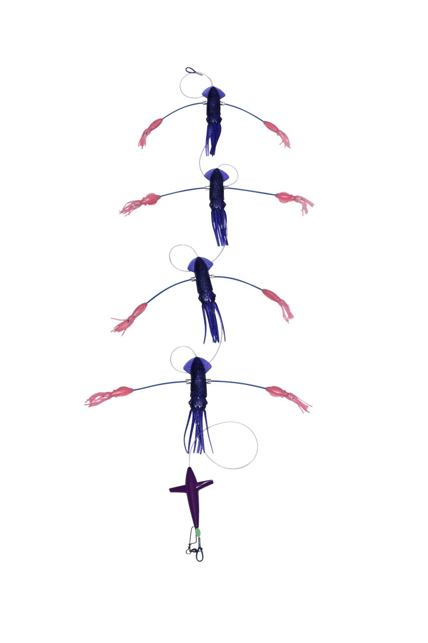 The design minimizes drag, allowing you to run the teasers in-line with your rigged lure, whether it's a skirt or diver, directly off your rod tip. For ease of use, the teasers are rigged with a heavy-duty Black Pete snap, facilitating quick and straightforward rig attachment if desired. Alternatively, you can run the mas stand-alone teasers when switch or pitch baiting. The bright and easily visible colours not only help those on the bridge spot the teasers but also aid those on the deck ready to deploy them. The teasers come in two sizes, 7" and 9", offering versatility to cater to different fishing situations and preferences. Available in Pink, Green, Blue and Purple