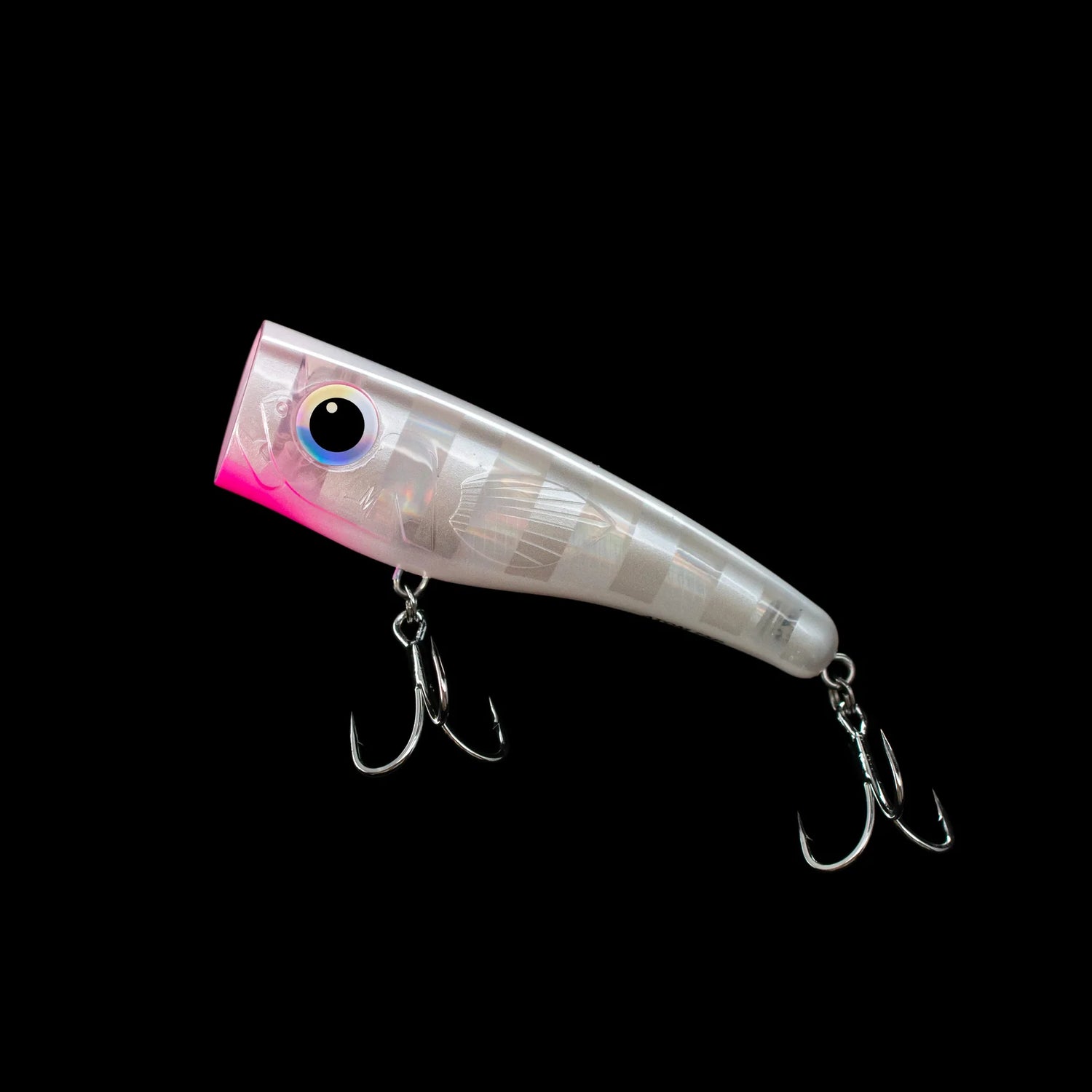 This surface popper can produce a wide range of actions, from explosive pops to subtle, finessed 'gloops.' It can be popped aggressively in a vertical style out wide, or with much more control when oriented top-down. Its large cup face, relative to its body size, gives this lure all the noise it needs to entice a strike, yet it can also be moderated to create a very subtle surface disturbance if needed.