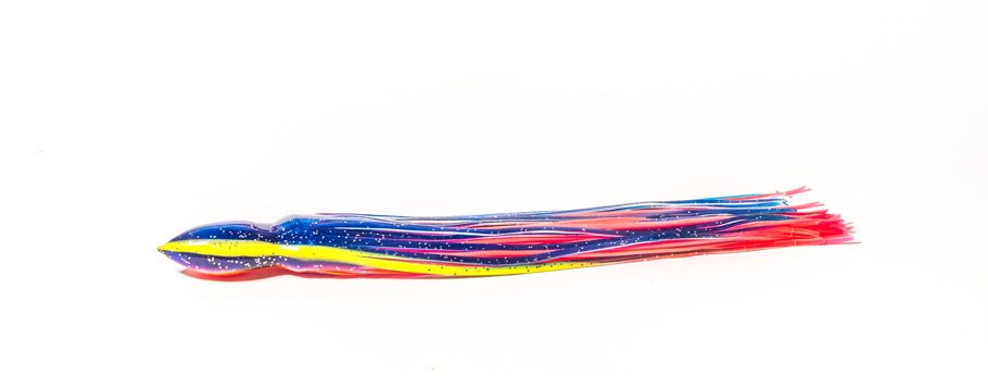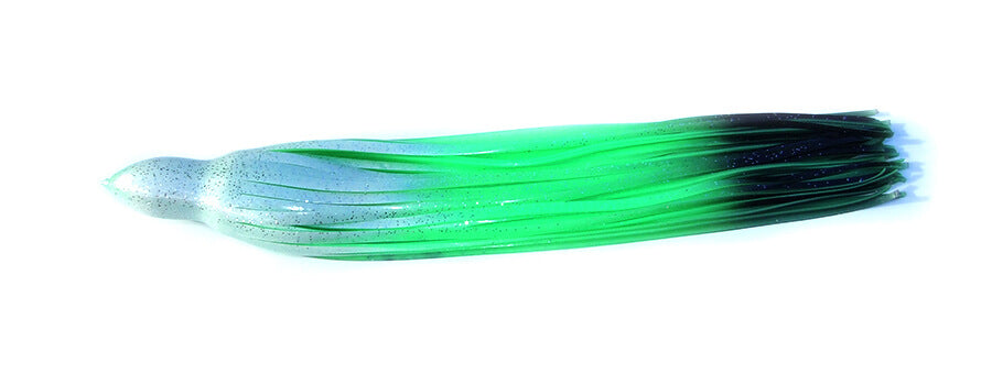 This cup face pusher is without doubt one of the most consistant lures in generally unfavourable conditions. Its long smoke trails raises fish and provokes the hardest calculated hits. Beat, Torture and Kill suits this lure well, just watch all this unfold right in front of your eyes. Easy to run, this lure will tolerate the worst conditions you can throw at it. Skirted Length: 330mm / 13” Hook Size: 9/0 – 10/0 Leader Size: 300lb – 400lb.