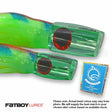 The FatBoy Lures Devil is a slant-face, short plunger-style design with a gentle angle and moderate taper, which gives a consistent and reliable action that works well across all sea conditions. A very stable and easy to use slant design that pumps out a strong bubble trail. The Devil is keel-weighted (both sizes) for perfect balance and true running performance. Versatile enough to be used from any position in the spread, though we recommend the short and long rigger, or shotgun, as the best positions to try it.