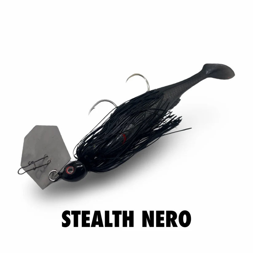 The Grunta is built on a X3 spinnerbait hook for incredible strength and long lasting performance, combined with a T shaped hook design and needle sharp point allowing for effortless hook ups, and all in a black nickle finish for a stealthy approach. This range also utilises a umbrella silicone skirts which creates ultimate flare, while also lasting much longer than traditional skirts.Other keys features are high quality ultra shiny blades, 3d eyes and slick head design. The Grunta is the ultimate search bait through weed, structure and open water from its noisy and aggressive vibration drawing fish in from a long way.