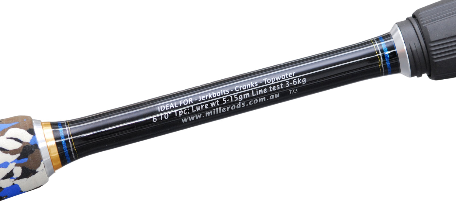 The TwitchFreak Medium is the latest addition to the Millerods production line up! Originally designed for bass anglers fishing jerkbaits and twitched lures in impoundments and big rivers, this rod has impressed us so much in the saltwater estuaries it has now become our favourite when fishing jerkbaits for flathead! In fact, any application targeting medium sized fish that requires presenting a lure 5-15gm in weight – especially hard bodied lures – will be ideal with this rod!