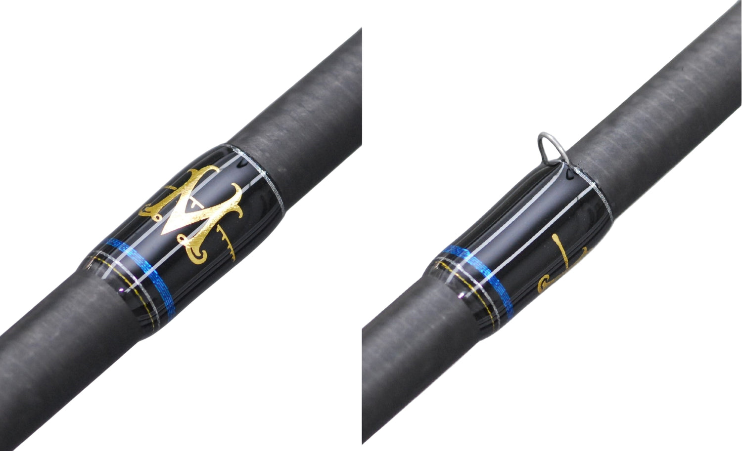 The TwitchFreak performs perfectly with either mono (FC) or braid lines with mono leaders*. The KR guide train is Fuji Fazlite ceramic in stainless steel frames.
