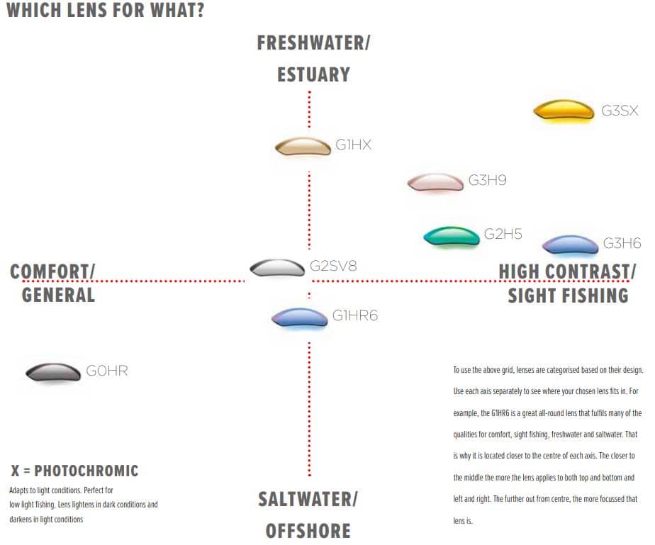 Frame and Lens CodeDescriptionLensLens Base ColourMirror CoatingHigh DefinitionInfra Red FilterPhotochromicInternal Mirror