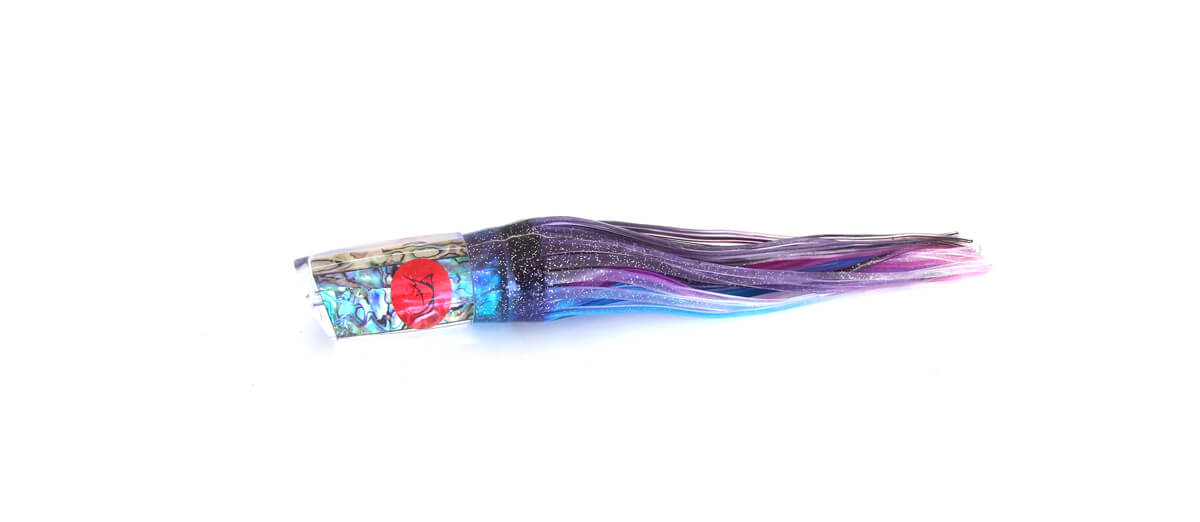 This is a great choice when targeting truly big blue marlin. Originally designed to be run at slow speeds, this lure has had a few small modifications from the original and now it has proved to the secret weapon to everyday fishing success. The aggressive surface running action of this lure draws savage crash bites providing you with, not only spectacular images, but also an extremely good hook-up rate. This lure was my hottest lure when I fished in the Azores consistently producing fish over 500lbs with the odd true monster thrown into the mix! Skirted Length: 420mm / 16.5” Hook Size: 11/0 – 12/0 Leader Size: 400lb – 600lb.