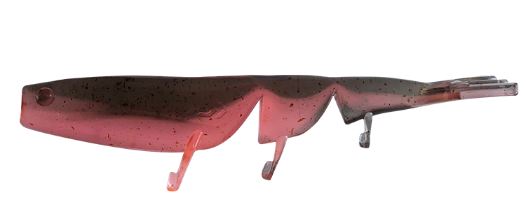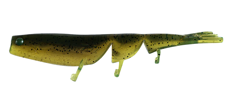The three segment body design aids in a natural sink, where the tail can splay and produce a natural gliding sink back to the bottom. The forward-facing legs derive from the 295 Flick’s tail design and have been adjusted to produce a subtle shimmy action on the retrieve to emulate the natural quivering movement of prawn’s legs. Designed to be fished with a hopping style retrieve emulating a prawn fleeing from the bottom. The Bait Junkie Prawn will undoubtedly become a staple in the range and a favourite in all anglers’ boxes throughout Australia. The Bait Junkie Prawn is available in 2.35”, 3” and 5” sizes.