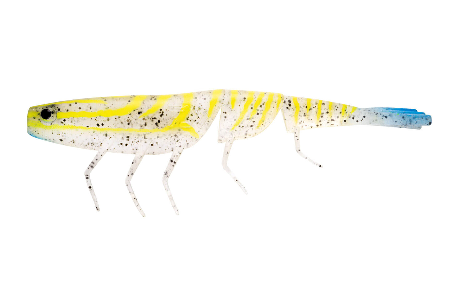 The Bait Junkie Prawn has been developed to mimic a prawn’s natural movements and is now available in 4 different sizes. The three segment body design aids in a natural sink, where the tail can splay and produce a natural gliding sink back to the bottom. The forward-facing legs derive from the 295 Flick’s tail design and have been adjusted to produce a subtle shimmy action on the retrieve to emulate the natural quivering movement of prawn’s legs.