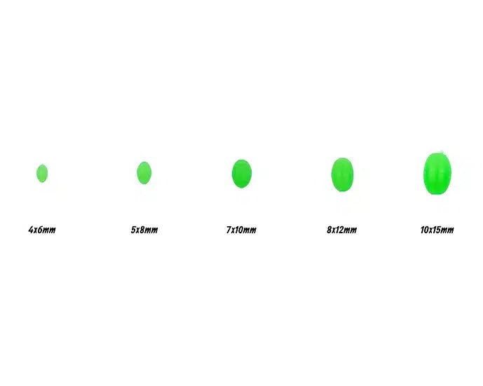 Hook'em Soft Oval Lumo Beads in green, available in 5 size options. Also available are Oval Lumo bead kits in mini and large sizes with assorted colours and sizes.