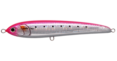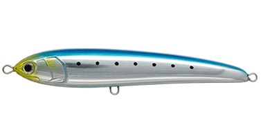 The latest stickbait by Maria Japan, the Rapido. The Rapido has an irregular rolling action that has an unique swimming action that is effective when there isn't much bait fish around or when the action is quiet. The lure has been designed for casting off the rocks for species such as salmon, bonito, kingfish, tuna and many more species. Casting has been tested with the lure and can be casted up to a max of 80m from the shore.