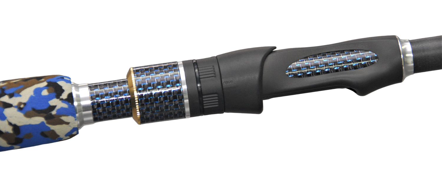 The Fuji TVS reel seat and carbon hood with locking ring ensures the angler grip is both comfortable and secure, skeleton handle is super comfortable and also enhances the amazing sensitivity of this rod, while the fighting rest grip allows for comfortable fishing when a big fish is hooked deep and vertical.