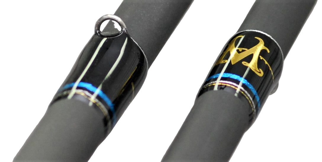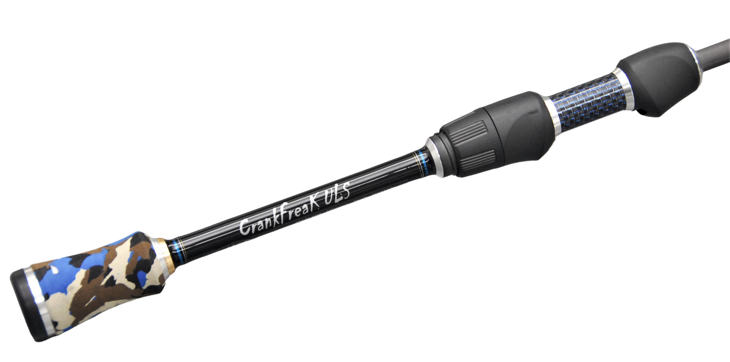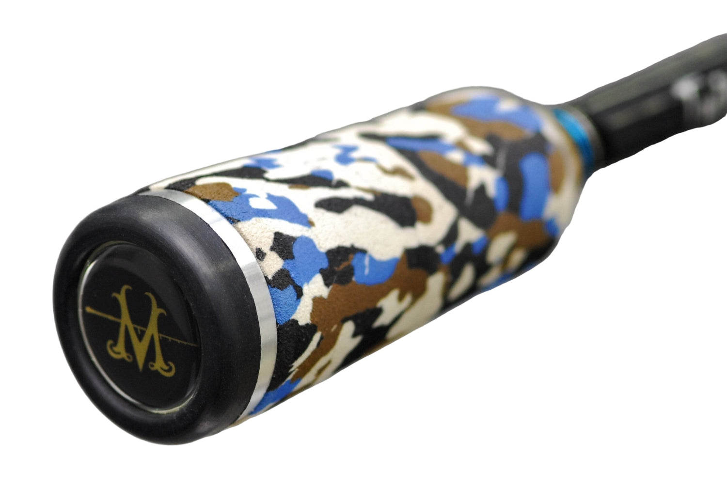 The CrankFreak ULS incorporates Ian’s ‘Control Freak’ style handle, comprising Fuji SKSS reel seat over a blue carbon barrel, and custom-shaped x-firm EVA in the Millerods signature style blue Camoufish pattern, all finished with the ‘M’ logo anti-skid butt cap.