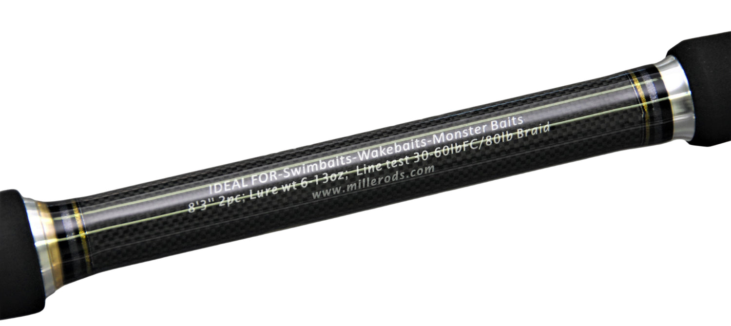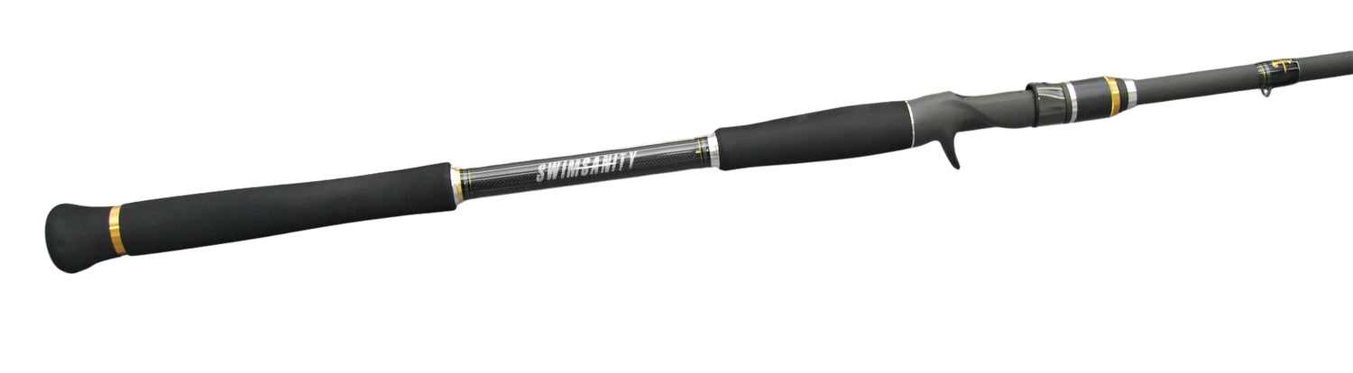 The action of the SWIMSANITY is similar to the Millerods BeastFreaK and DreamFreaK rods, so jumping up in lure size is a lot less difficult than you might have thought. The user-friendly action loads easily on the back-cast, then goes to work in launching these massive lures big distance with efficient smoothness! This allows you cast giant baits for long sessions without injuring yourself - just take it easy, use the timing and SWIMSANITY will do the rest!
