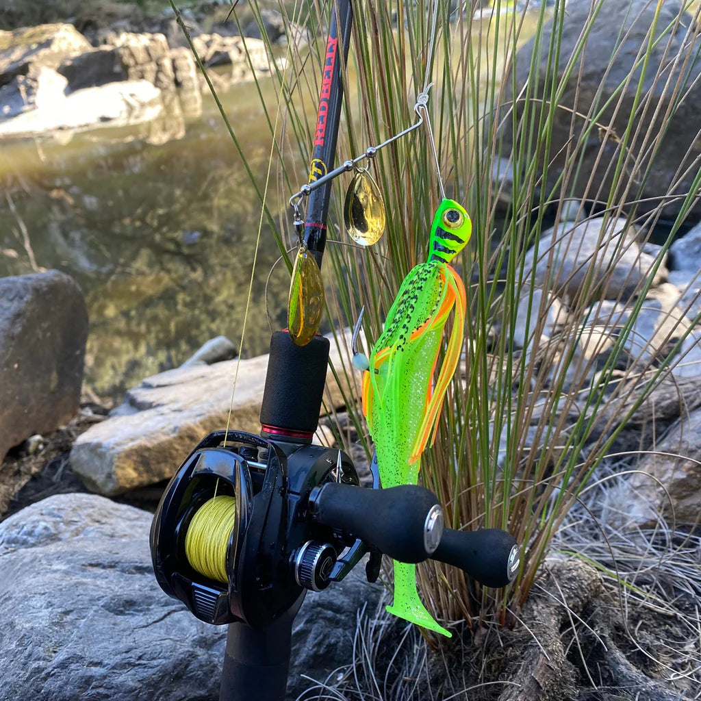 Double Colorado blade options include 1/2oz, 3/4oz and 1oz sizes, pre-rigged with a durable, custom TT Enforcer PVC soft plastic trailer. Built on a heavy-duty Mustad chemically sharpened main hook and fitted with a premium TT custom stinger in the soft plastic trailer.A dozen dynamite colours include updates of some classics, along with exciting new additions that include three signature colours from freshwater fishing guru Lubin Pfeiffer (The Full Scale Fishing Adventures), Carp, Fire Tiger and Pearl.