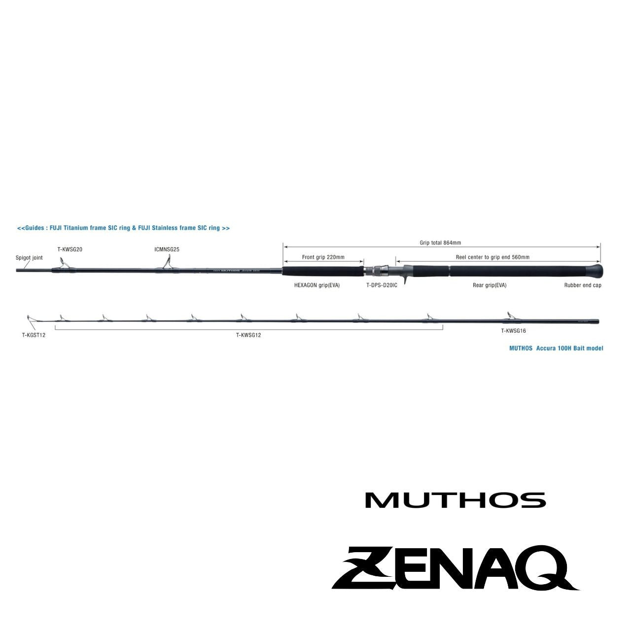 The Accura 100H Baitcasting/Overhead model is built on the same blank as the flagship Accura Type R model it just differs in the guide train and reel seat. The Ocean guide models which include the 100H Baitcasting feature Fuji MNSG (Ocean Guide) Stainless framed Silicon inserted guides followed by Fuji titanium K silicon guides. If your looking for a baitcasting/overhead shore cast rod to catch anything from longtail tuna to GT's look no further!